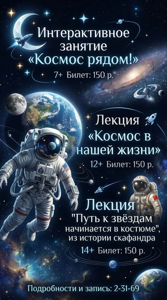 Мероприятия, посвященные Юбилейному Дню космонавтики, проводятся в музее весь апрель! Также возможен выездной формат (лекции).
